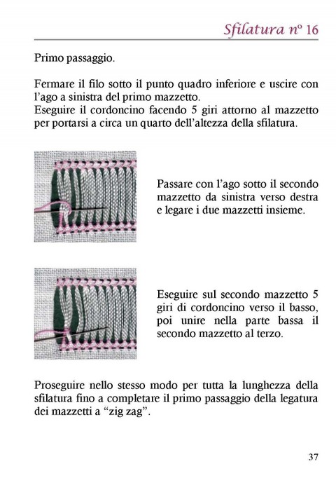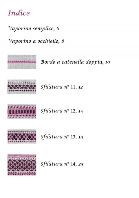 Come nel primo manuale sono dettagliatamente spiegati, con le foto passo passo, i vari passaggi da seguire per l'esecuzione di altre 10 sfilature.